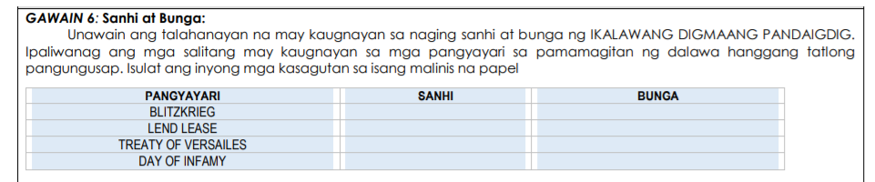 Gawain 6 Sanhi At Bunga Unawain Ang Talahanayan Na Chegg Com