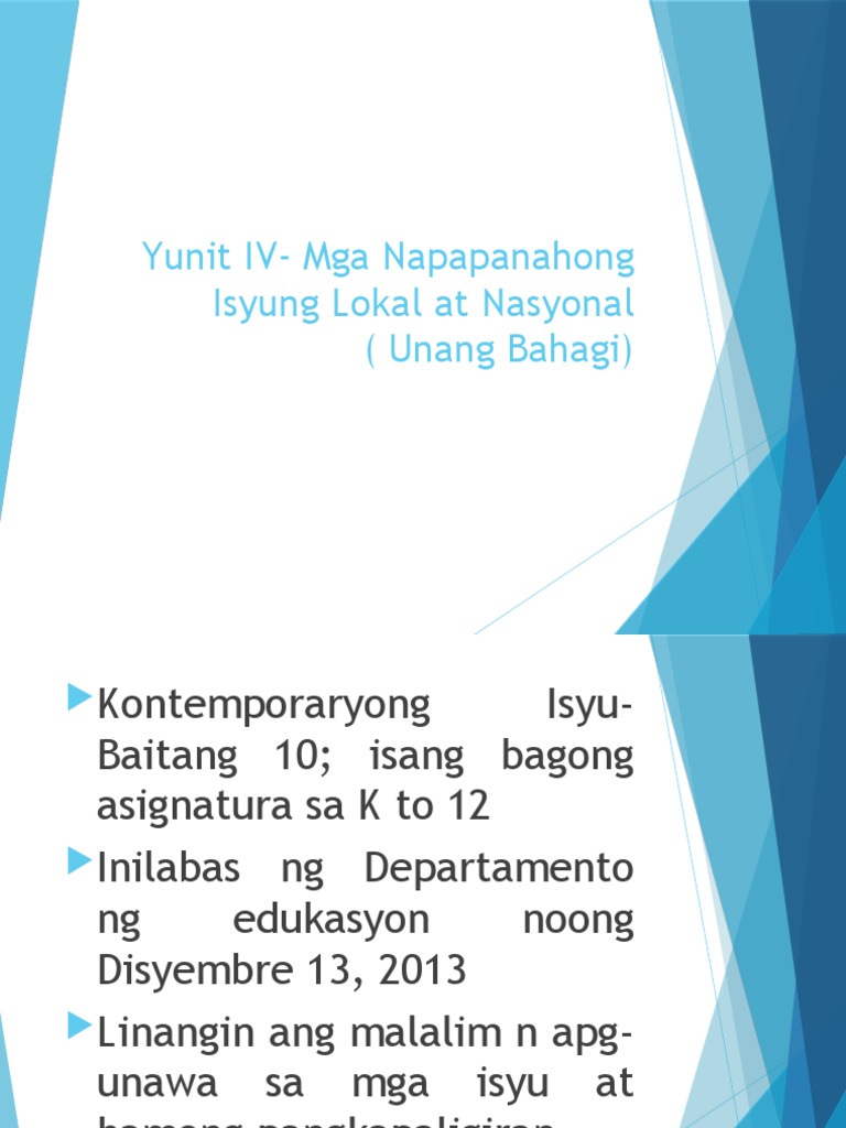 Panimula at Gabay na Tanong Sa modyul na ito ay susuriin ang mga isyung pang-ekonomiya tulad ng globalisasyon isyu sa paggawa at migrasyon kaakibat ang implikasyon nito sa pamumuhay ng mga Pilipino. Ngunit dahil sa kabi-kabilang katiwalian maraming isyung pang-edukasyon ang hinaharap ng bansa ngayon. This 10-item worksheet asks the student to tell whether the underlined portion of the sentence is the sanhi or the bunga.