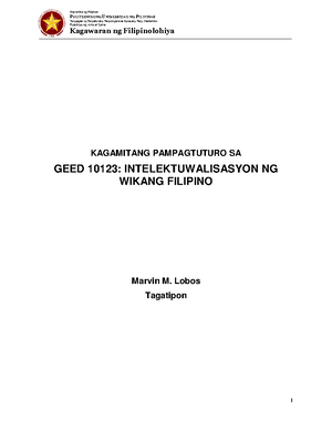 Geed 10123 Intelektuwalisasyon Ng Wikang Filipino Zz Studocu